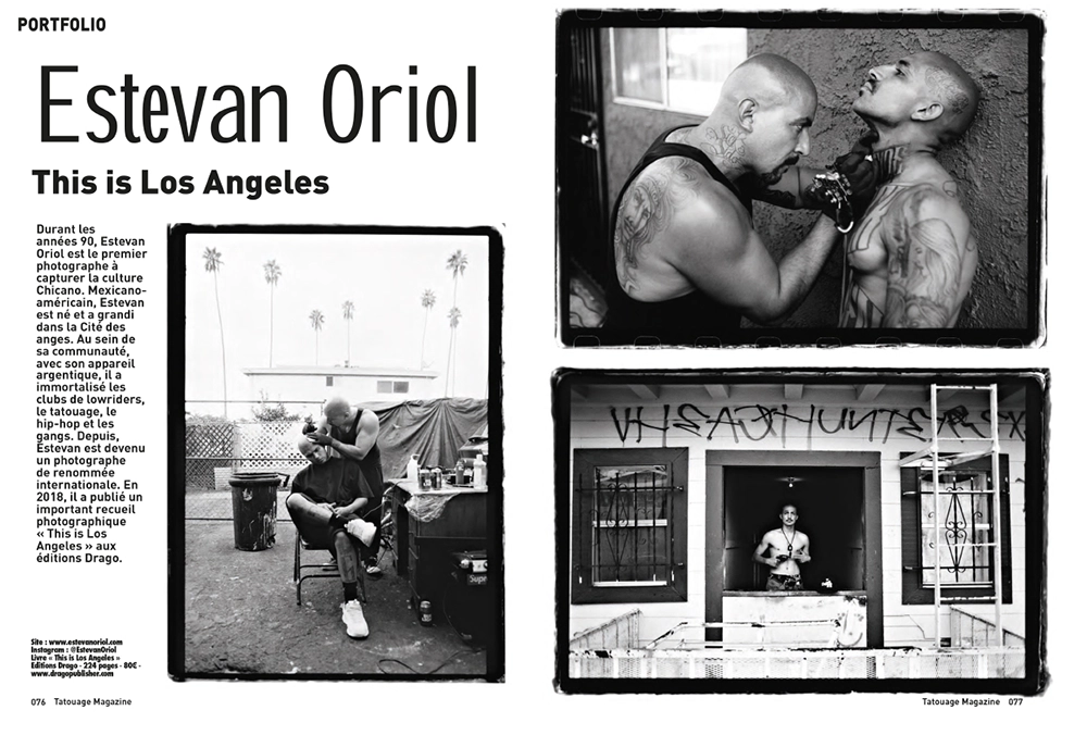 Dans les années 1990, Estevan Oriol est l’un des tout premiers photographes à documenter de l’intérieur la culture chicano. Fils d’immigrés mexicains, né et élevé à Los Angeles, il a grandi au cœur de cette communauté plurielle, l’appareil photo à la main. Avec son boîtier argentique, il a capturé l’essence brute des clubs de lowriders, du tatouage, du hip-hop et de la vie des gangs. Depuis, Estevan Oriol s’est imposé comme une figure incontournable de la photographie urbaine. En 2018, il publie This is Los Angeles, un recueil marquant édité par Drago, qui revient sur trente ans d’images et de rue.