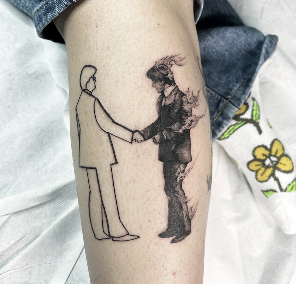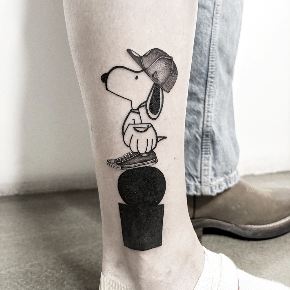 Il poursuit au sujet de cette nouvelle voie : « J’ai commencé à intégrer un élément réaliste dans mes tatouages. Comme les tatouages de Keith Harring que j’ai encrés, ça fonctionne bien. J’avais envie de mixer le côté pop culture avec des motifs plus traditionnels, comme le Sacré-Cœur ou le papillon en fine ligne très classique de l’école californienne tels que Jack Rudy, Mark Mahoney, etc… J’aime mélanger mon background d’école d’art avec celle du tatouage, pour que ça raconte quelque chose. «